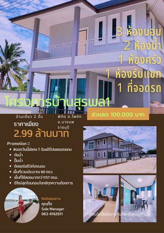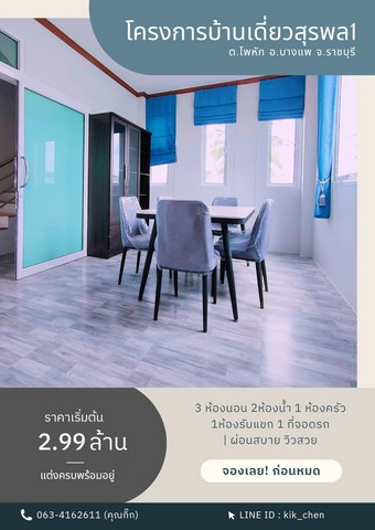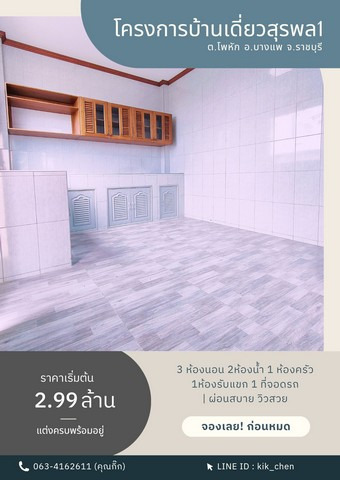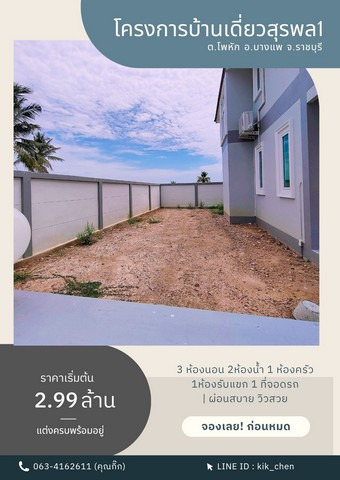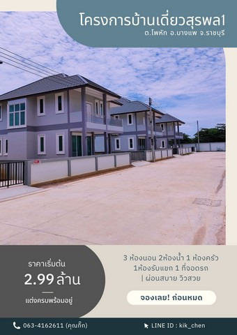ขายบ้านเดี่ยว2ชั้น หมู่บ้านสุรพล1 พิกัด โซนบ้านแพ้ว ใกล้รพ.บ้านแพ้ว ต.โพหัก อ.บางแพ จ.ราชบุรี