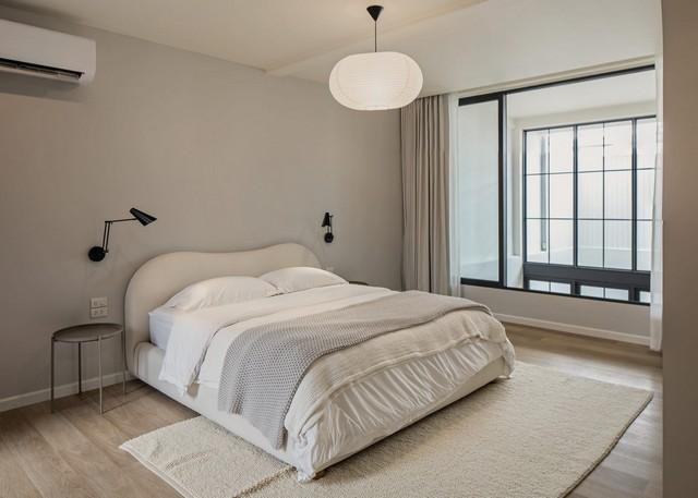 เตียงใหญ่ขนาดใหญ่และตู้เสื้อผ้าแบบเดินส่วนตัว