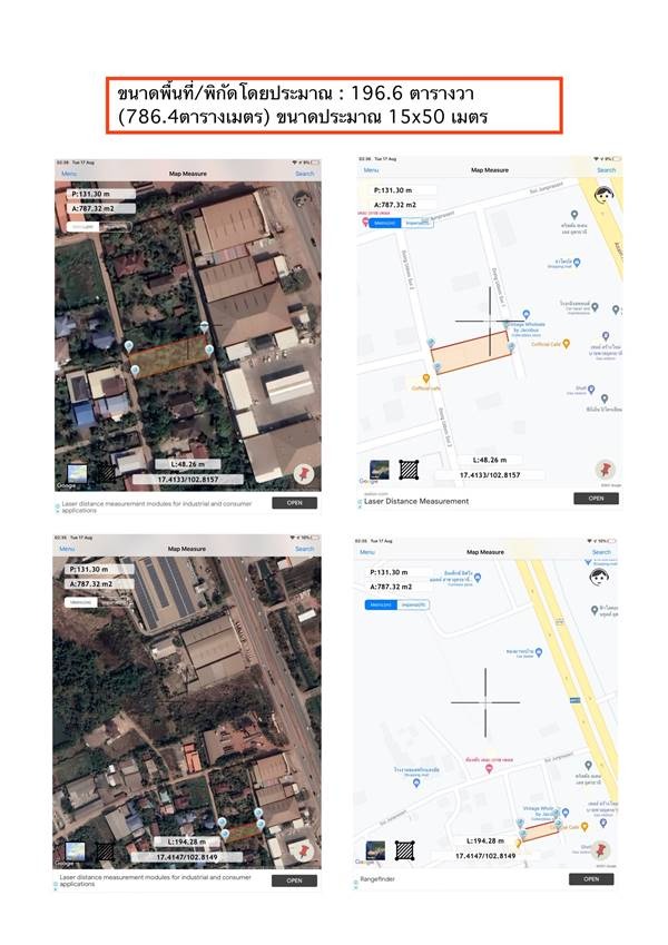 เนื้อที่รวม: 196.6 ตร.ว ขนาดประมาณ 15x50 เมตร