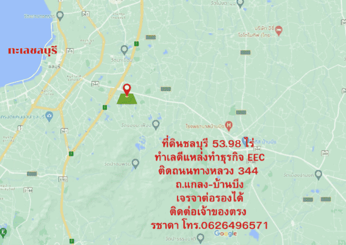 ขายที่ดินชลบุรี ทำเลธุรกิจดี ติดถนน344 อยู่แหล่งเศรษฐกิจ EEC พื้นที่เจริญอย่างต่อเนื่อง