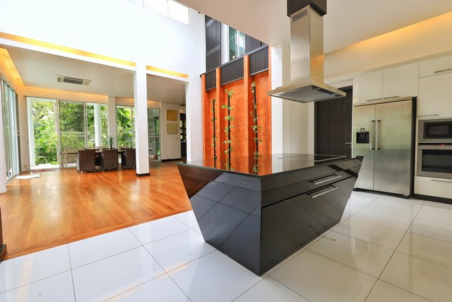 - ครัวฝรั่งสไตล์โมเดิร์น พร้อมไอส์แลนด์ และเคาน์เตอร์ครัว ท็อปหินแกรนิตสีดำ