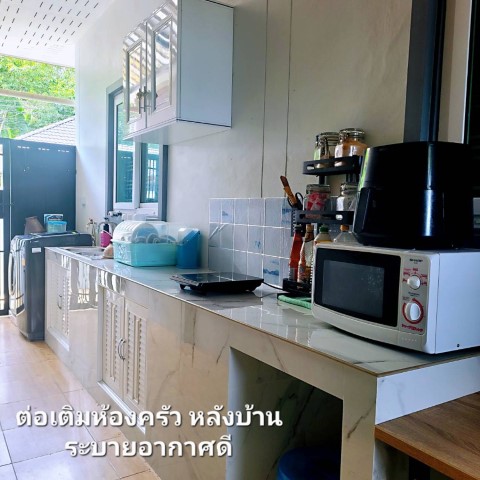 - ต่อเติมครัวไทยหลังบ้าน เค้าเตอร์ครัว ตู้บิ้วอิน ซิ้งค์ล้างจาน