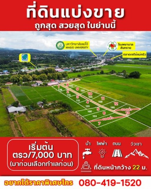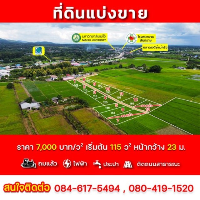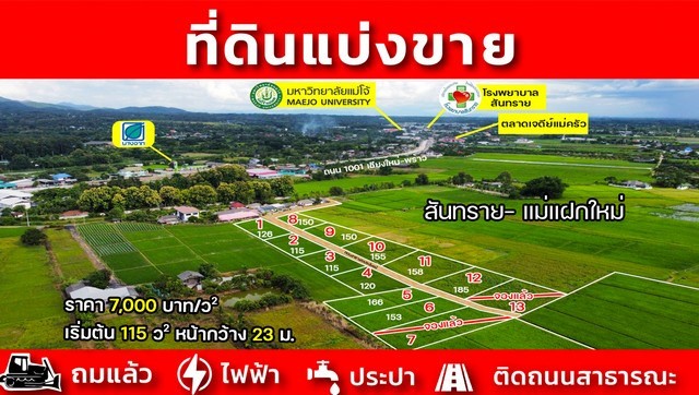 ที่ดินแบ่งขายบ้านแม่แฝกใหม่ใกล้ตลาดเจดีย์แม่ครัว**เจ้าของขายเอง**
