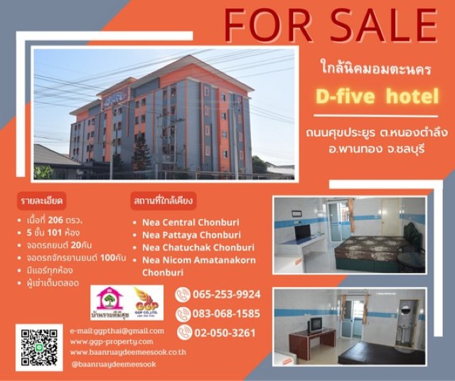 ขายโรงแรม D-five ตึกกานต์สินี2 ถนนศุขประยูร ต.หนองตำลึง อ.พานทอง จ.ชลบุรี