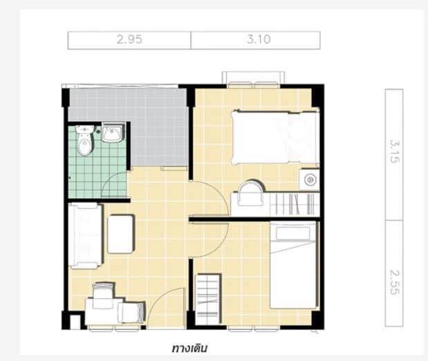 ขนาด 2 ห้องนอน 1 ห้องน้ำ