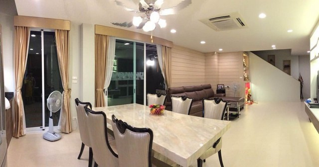 บ้านเดี่ยว 3 ชั้น หน้ากว้าง 10.5เมตร พื้นที่ใช้สอย 302 ตร.ม 4 ห้องนอน 6 ห้องน้ำ สามารถจอดรถได้ทั้งหมด 3 คัน ครัวไทย ติดตั้งอุปกรณ์ทั้งหมดเรียบร้อยแล้ว