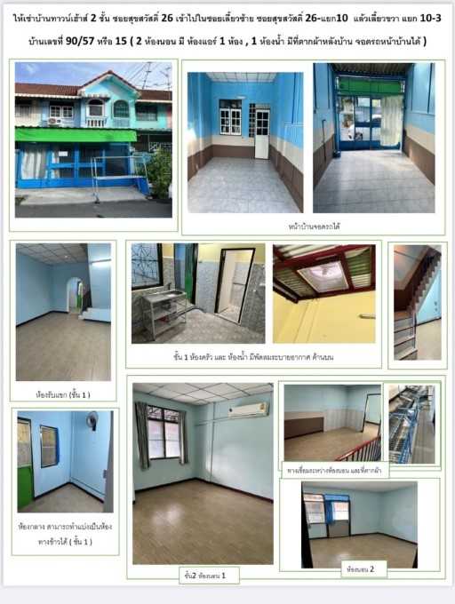 ให้เช่าบ้านทาวน์เฮ้าส์ 2 ชั้น ซอยสุขสวัสดิ์ 26 เข้าไปในซอยเลี้ยวซ้าย ซอยสุขสวัสดิ์ 26-แยก10 แล้วเลี้ยวขวา แยก 10-3
