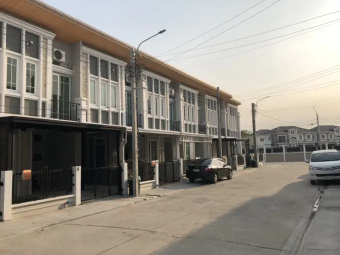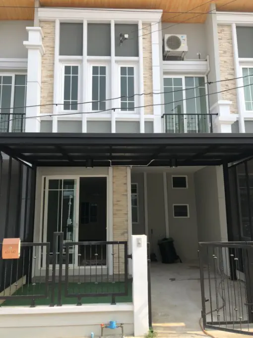 ทาวน์โฮม 2 ชั้น พร้อมส่วนกลาง สาธารณูปโภคครบครัน ติดถนนใหญ่ ตรงทางเข้าเมืองทอง อยู่ห่างจากสถานีรถไฟฟ้าสีชมพู สถานีทะเลสาบเมืองทองเพียง 2 กิโลเมตร