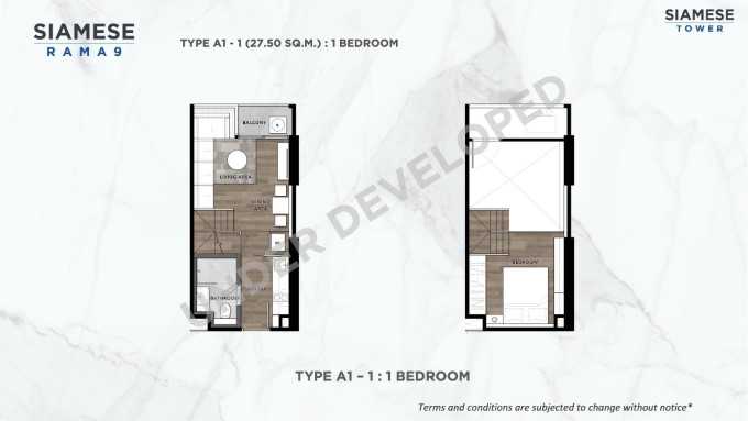 ขนาดพื้นที่ใช้สอยรวมถึง 37.5 ตารางเมตร (พื้นที่ห้อง 27.5 + พื้นที่ Mofs 10.0 ตารางเมตร) แบบ 1 ห้องนอน 1 ห้องน้ำ