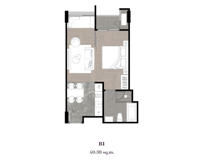 1 ห้องนอน 1 ห้องน้ำ ขนาด 40.38 ตร.ม.