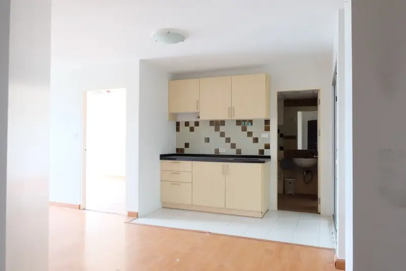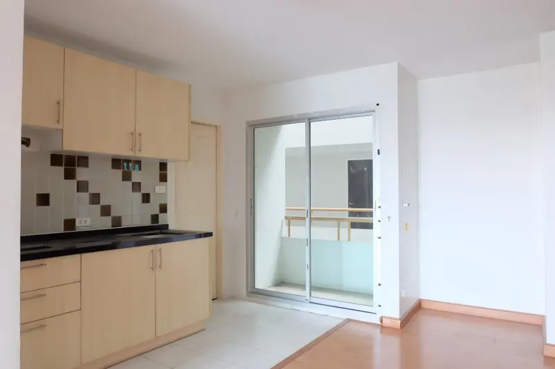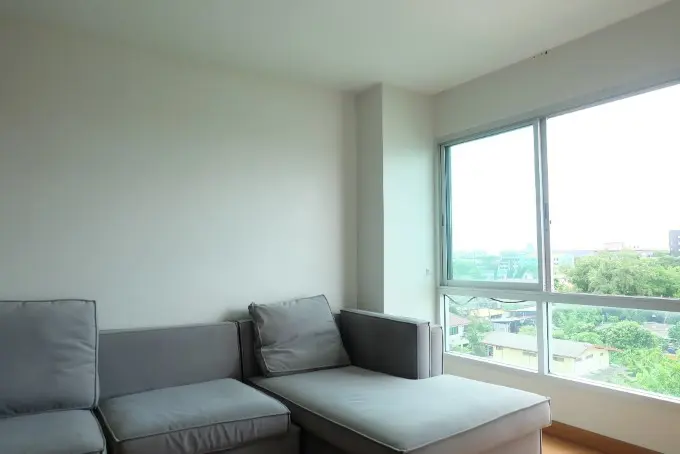 คอนโดอยู่ชั้น 6 แบบห้อง 1ห้องนอน 1ห้องน้ำ 1 ห้องครัว 1 ห้องนั่งเล่น