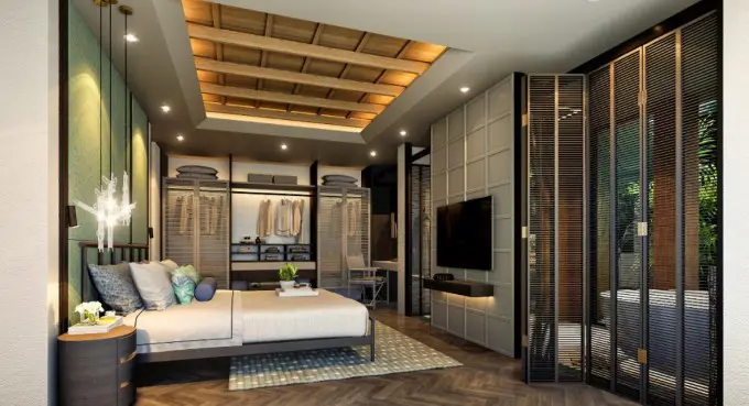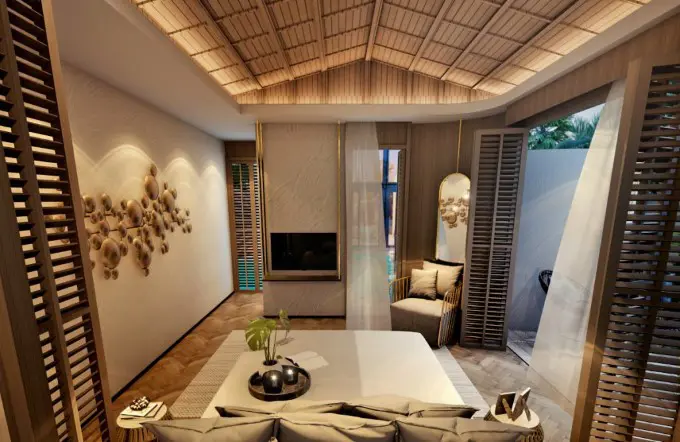 พูลวิลล่า 1 ชั้น แบบ B ขนาดพื้นที่ใช้สอย 230 ตารางเมตร 3 ห้องนอน 4 ห้องน้ำ ที่จอดรถ 3 คัน พร้อมสระว่ายน้ำในตัวบ้าน