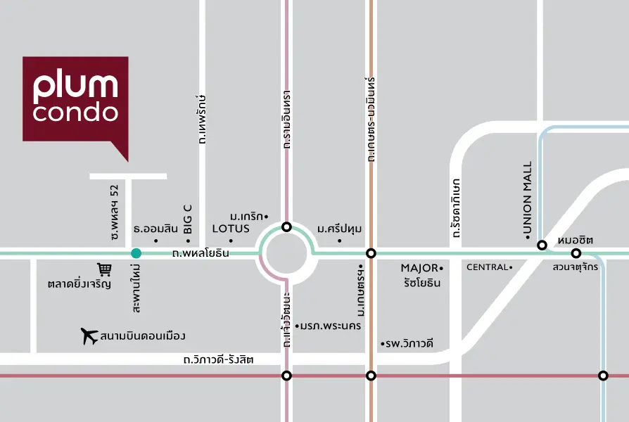 สถานที่สำคัญโดยรอบ พลัม คอนโด สะพานใหม่ สเตชั่น