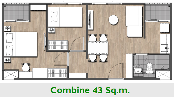 + 2 ห้องนอน ห้องนั่งเล่น ห้องครัว