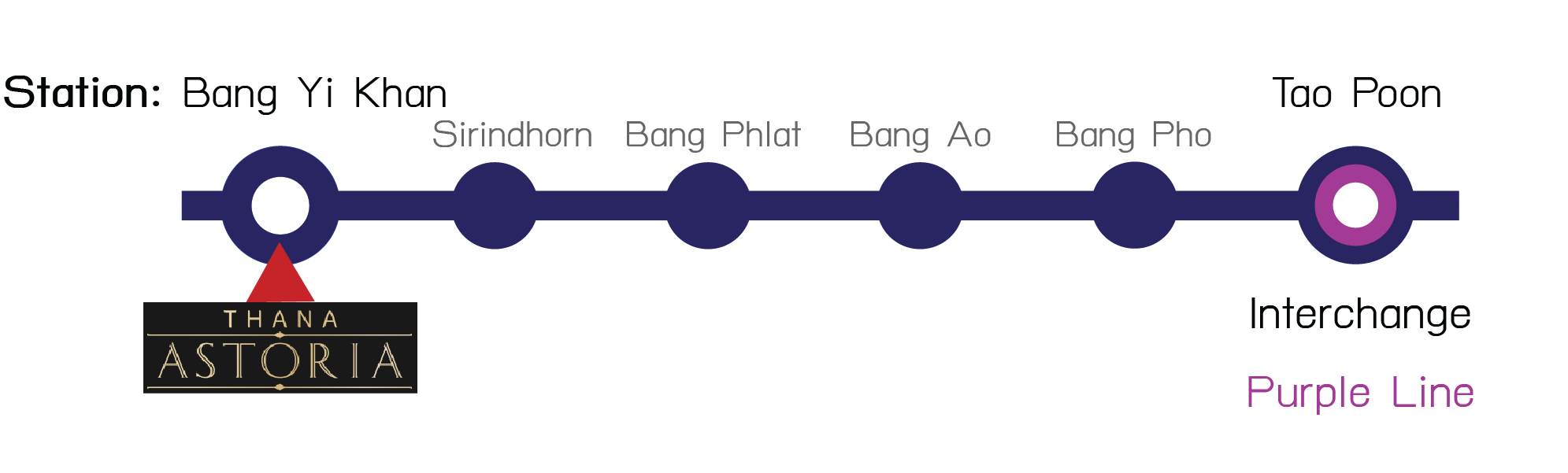 Thana Astoria Pinklao is in a prime location on Charansanitwong road (between Soi 44-46). Only 150 meters away from Bang Yi Khan MRT Station. It can easily connect to the heart of Bangkok via 3 bridges crossing the Chao Phraya River; Phra Pinklao Bridge, Rama 8 bridge and Krung Thon Bridge (Sung Hi bridge).