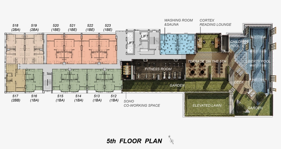 ครบครันด้วยสิ่งอำนวยความสะดวกแก่ผู้อาศัย โดยจัดวางสิ่งอำนวยความสะดวกหลักอยู่ที่ชั้น 5 ได้แก่ Co-working space มุมอ่านหนังสือ สระว่ายน้ำ ฟิตเนส ซาวน่า ฯลฯ นอกจากนั้นยังได้จัดวางสวนหย่อมประจำตามชั้นต่างๆ เช่น ชั้น 5 ชั้นดาดฟ้า ตลอดจน บริเวณรอบโครงการ ทั้งนี้ยังรวมไปถึงพื้นที่บริการอื่นๆ อาทิ พื้นที่ล้างรถ พื้นที่เติมลม ที่อยู่ภาย ในอาคาร สำหรับลิฟต์โดยสาร ทางโครงการจัดไว้ให้ 3 ตัว เฉลี่ยออกมาอยู่ที่ ประมาณ 9 หน่วยพักอาศัยต่อลิฟต์ 1 ตัวต่อชั้น และมีลิฟต์ขนของแยกจำนวน 1 ตัว